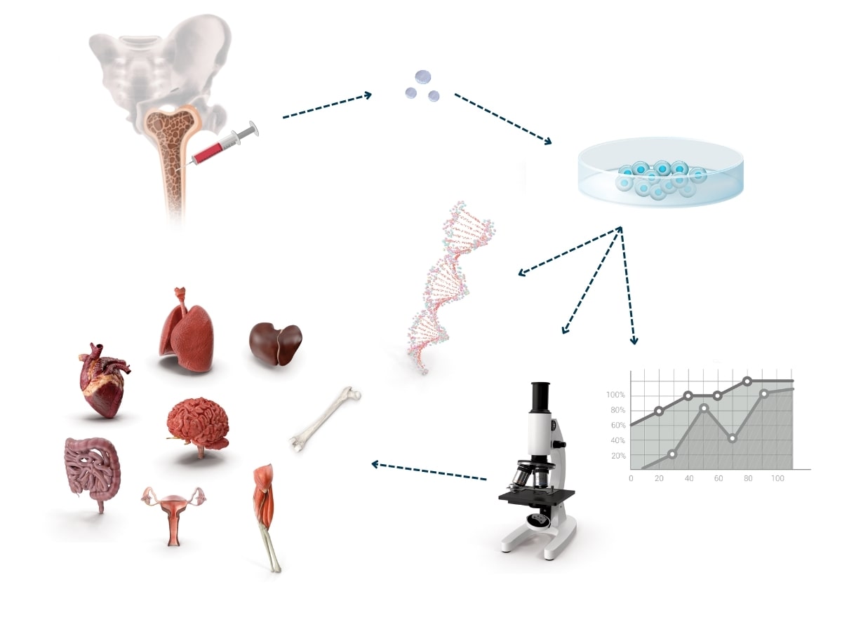 All humans have a certain amount of mesenchymal stem cells (MSCs) in their bodies. These self-healing agents remain dormant in the body until called upon to repair damaged tissues or replenish dead cells. As we age, MSCs also age and become increasingly ineffective and depleted overtime. Henceforth, supplementation via transplant of millions of younger, healthy MSCs can lead to a substantial increase in quality of life for patients.